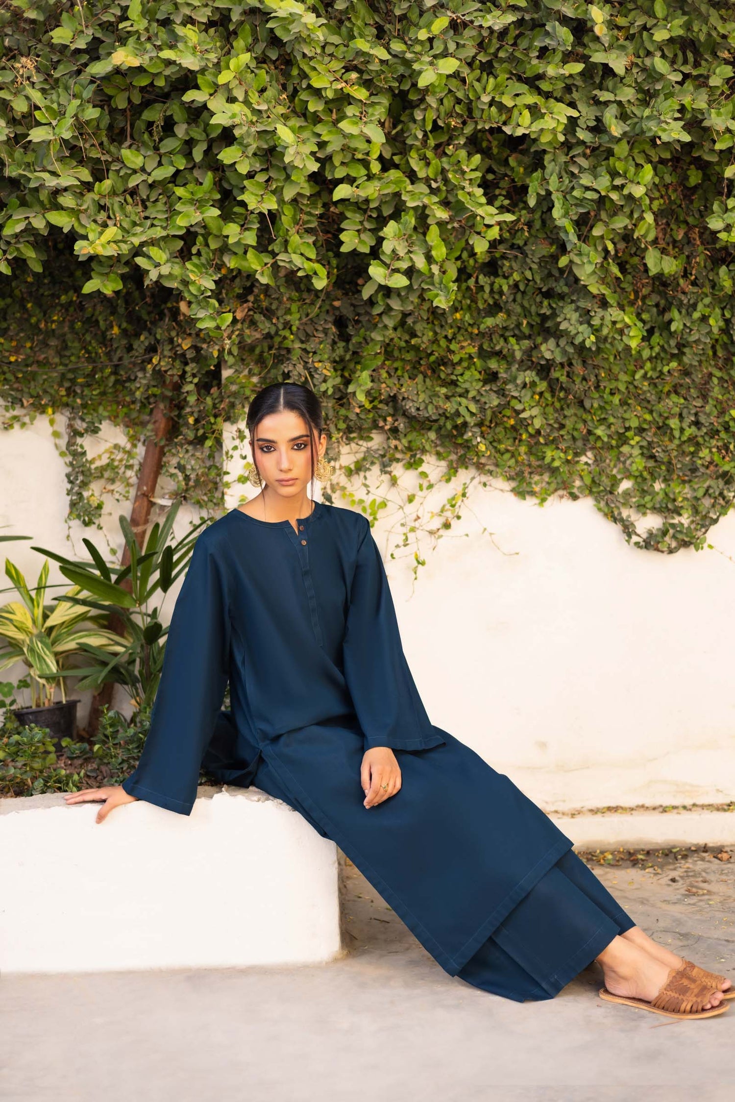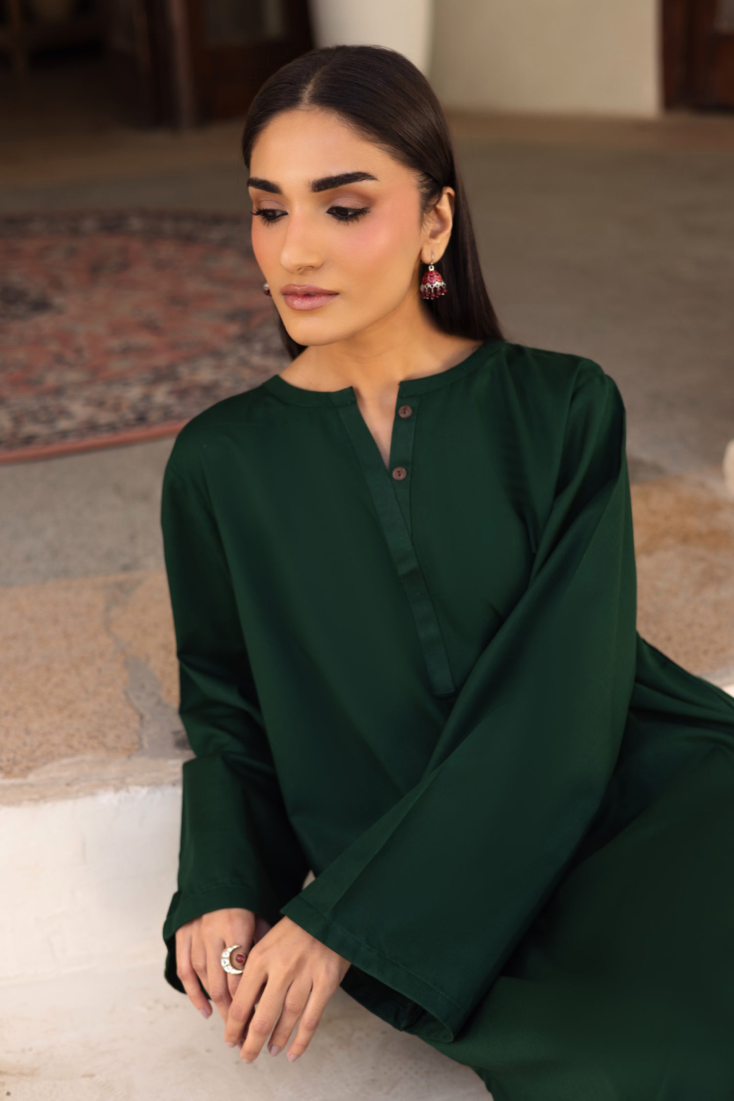 ✔ Silhouette: Relaxed, Loose-Fit Kurta paired with matching pants for a modern, effortless drape.