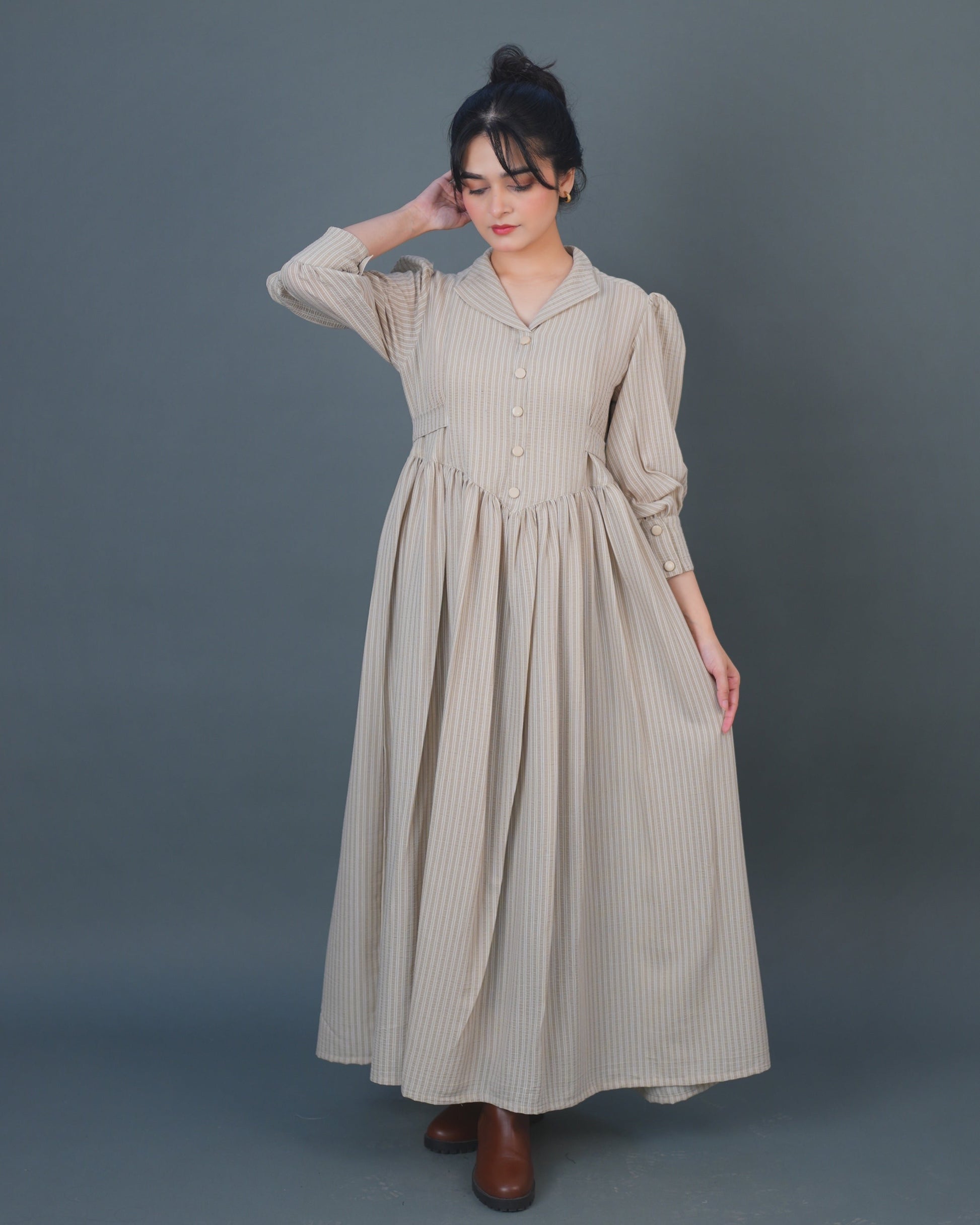 Soft textured crepe Woman's Cream Lined Maxi Dress by Vastramaniaa